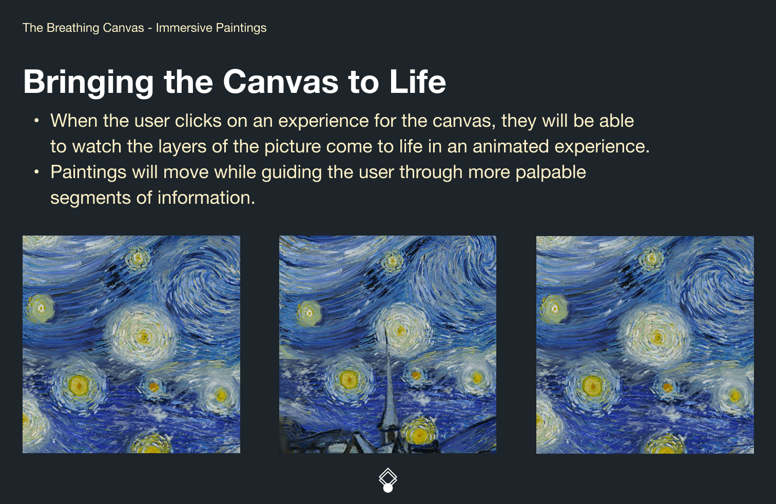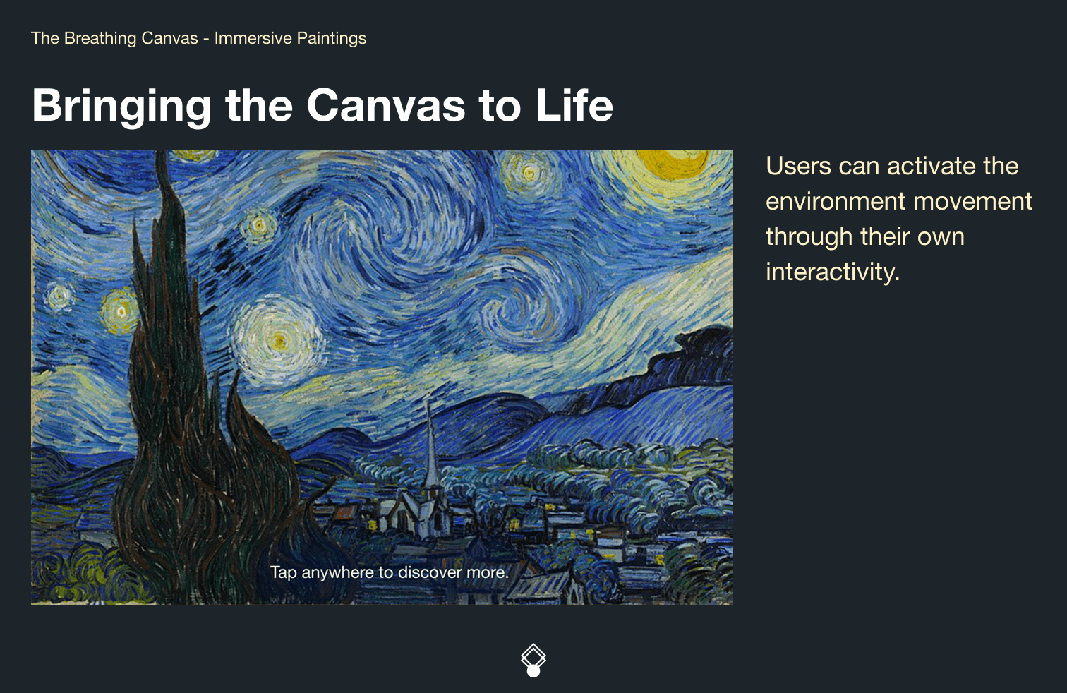 Further, this experience aims to make information more exciting and palpable for younger audiences, and to guide viewers overall towards the historical enrichment of the gallery artwork.