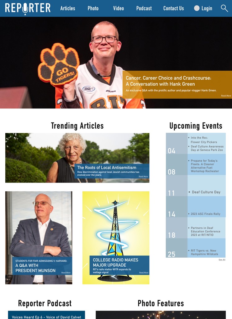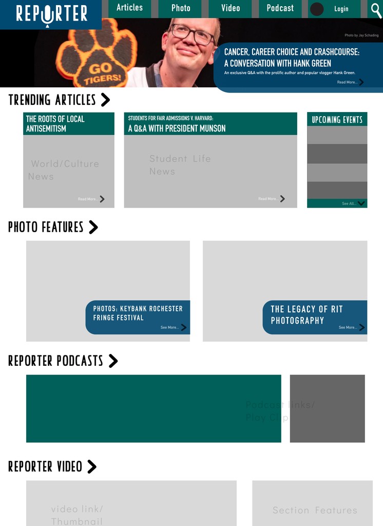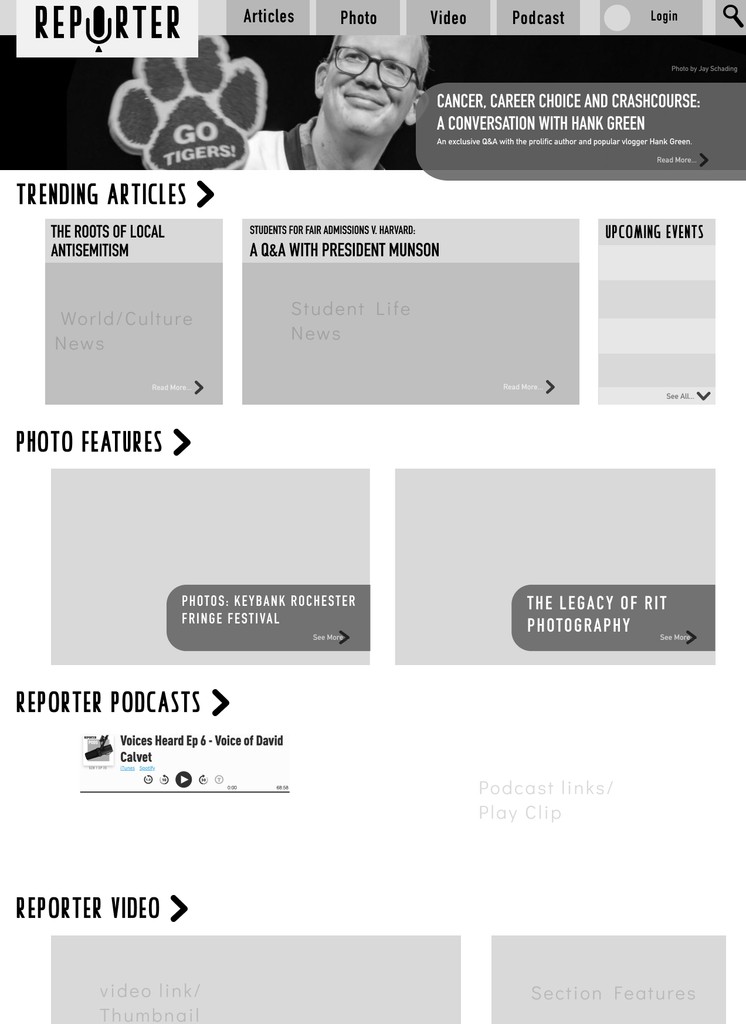 I created a training system for filming and editing, and laid out the pipeline of shooting and interviewing while assigning editing to both myself and my team of video editors. I also worked partly as a designer during the rebuilding of the Reporter Website.